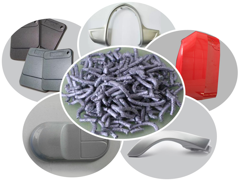 銀箭注塑免噴涂用鋁銀條采用先進PE蠟包覆技術,保持鋁銀條鋁含量在70-80%,能夠耐溫300度,在注塑中具有良好的分散性、氣味低、能與多種塑料載體相容、能與其他顏料混合使用,使用中不起塵,安全、環保。